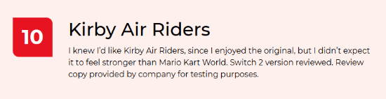 Switch 2競速新作《星之卡比:天空騎士》已于11月20日正式發售。外媒siliconera為本作打出10分好評。評語如下:我知道自己會喜歡《星之卡比:天空騎士》,畢竟我曾是原版的粉