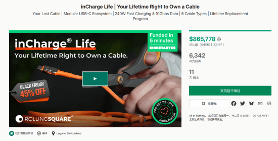 據外媒報道,最近一場Kickstarter眾籌活動因其高遠的目標引發關注:這款名為“inCharge Life”的USB-C數據線宣稱其使用壽命將超過它所充電的設備,并提供終身保修服務。制