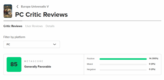 《歐陸風云5》口碑已解禁,M站媒體均分85分。14家媒體全部給出好評,沒有中評和差評。TheGamer給出4.5/5:盡管《歐陸風云5》并非毫無瑕疵,但它依舊取得了輝煌的成功,尤其是相