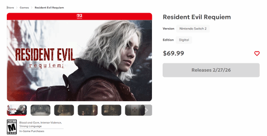 任天堂官方商店近日正式公開了卡普空旗下生存恐怖大作 《生化危機:安魂曲》的預購信息,這款游戲將登陸Nintendo Switch 2。根據官方商店頁面顯示的截圖信息,《生化危機:安