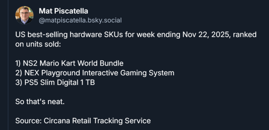 Circana分析師Mat Piscatella發(fā)文,截至2025年 11月22