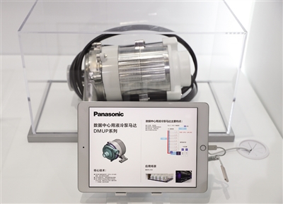 這是近日在進博會消費品展區松下展臺內拍攝的一款數據中心用液冷泵馬達。該產品在本屆進博會為亞洲首發。新華社記者 王婧嬙 攝  日前在上海舉行的第八屆中國國際進口博覽會(進博會)上,眾多行業的頭部企業將數