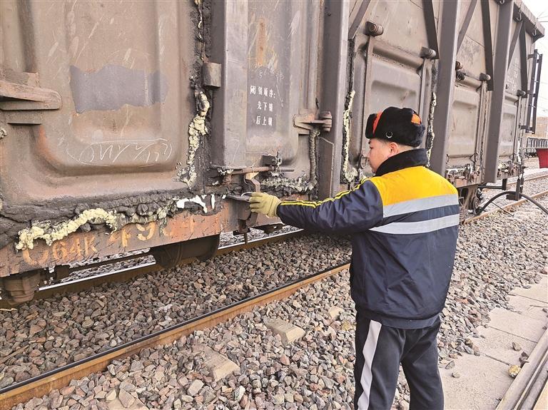 車輪碾過鋼軌,發(fā)出“吱吱呀呀”的聲響。站長全旭東帶領調車組隊員,沿著區(qū)間線路路肩和站內股道中間緩步前行,目光緊鎖旋轉的輪沿,生怕錯過任何一處線路凸凹。