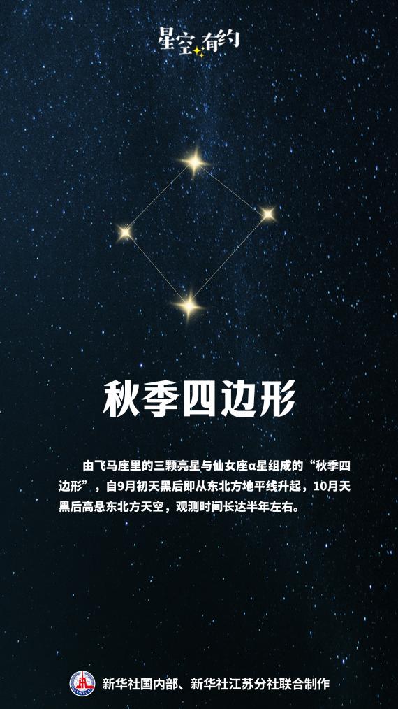 隨著夏夜銀河慢慢西沉,以飛馬座和仙女座為代表的秋季星空開始占據(jù)夜空“舞臺”的中央。“由飛馬座里的三顆亮星與仙女座α星組成的‘秋季四邊形’,在亮星較少的秋季夜空中尤為突出。它們自9月初天黑后即從東北方地平線升起,10月天黑后高懸東北方天空,觀測時間長達(dá)半年左右。”王科超說。