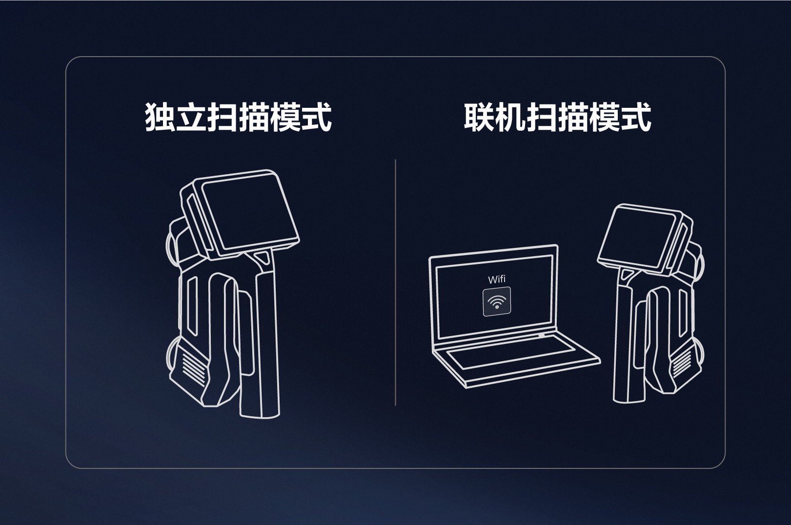 聯機掃描模式:設備也可以通過無線/有線連接電腦獲取更強算力,進一步提升掃描和檢測的效率,在面對大容量數據處理、復雜的尺寸檢測或者需要與其他專業軟件協同工作的場景時,聯機掃描模式能夠為用戶提供更加全面和高效的解決方案。
