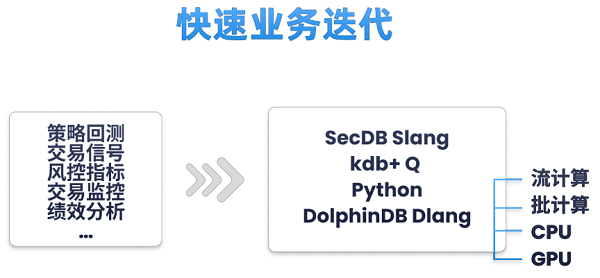 DolphinDB 提供 2000+ 計算分析函數、豐富的指標和因子模塊,以及訂單簿引擎、估值定價、回測撮合等開箱即用的業務中間件與平臺組件,支持像“搭樂高”一樣快速構建業務系統。