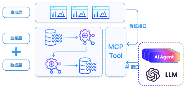 創新性提出“統一能力底座+雙重接口”智能架構。通過將風險模型、因子計算等業務邏輯封裝為標準化 MCP 工具,使同一套接口既能被傳統前端調用,也可被 AI Agent 直接理解使用。用戶既可專業操作平臺界面,也能通過自然語言與 AI 交互,實現“一套能力、多種調用”。該架構確保 AI 直接調用可靠接口而非生成邏輯,從根本上避免“幻覺”風險,保障智能交互的準確與可靠。