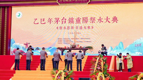 上午十時二十九分,祭水大典核心儀式將活動推向高潮。從“鳴鼓啟祭·龍禧赤河”的恢宏開場,到“恭迎源水·獻唱童謠”的純凈質樸,再到“周禮祭水·祝文追遠”的莊嚴肅穆,每一個儀程都彰顯著醬酒人對傳統與自然的敬畏。